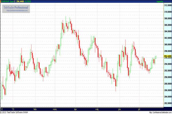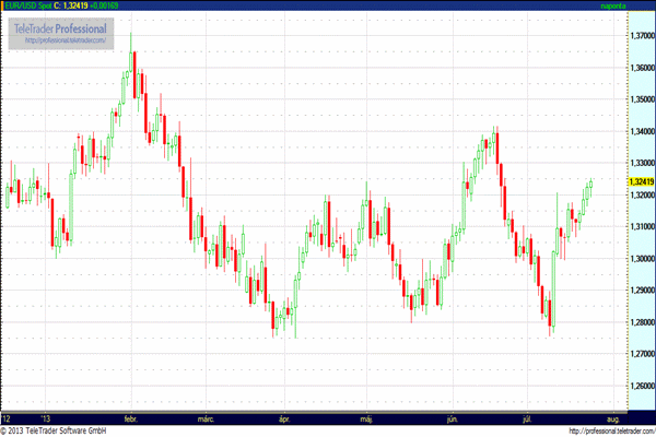 Bernanke féléves kongresszusi meghallgatásán nem adott a QE csökkentésével kapcsolatosan új információt, csak megismételte, hogy a kötvényvásárlások csökkentésének menetrendje nincs előre meghatározva. A reggeli német és eurozónás PMI a vártnál jobban alakult, ami az euró erősödését okozta, elrugaszkodva az 1,32-es szinttől.