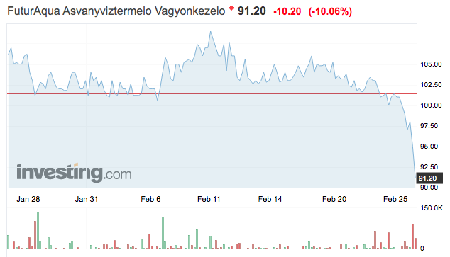 Az ásványvízes cég árfolyama is lefolyt, lecsorgott, lecsöppent, lezúdult (mindenki válassza ki a neki tetsző igét).