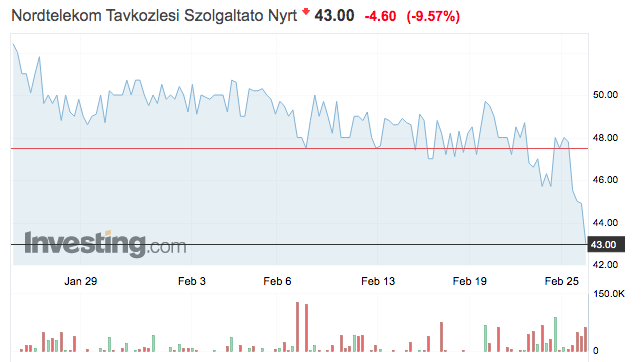 Hmmmmm..., a NordTelekom még csak -9,57%-nál tart ma, szóval kicsit kilóg a "ma 10% felett zuhanok" mezőnyéből, de van még hátra a kereskedésből több mint fél óra, szóval...
