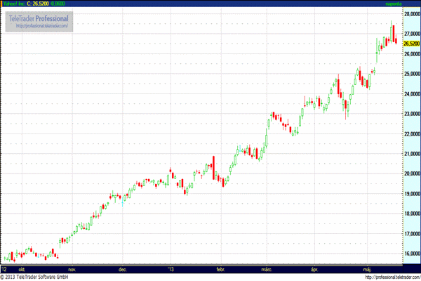 A Yahoo árfolyama apénteki napon ugyan 0,23 százalékkal csökkent, azonban az idei évben már 32,07 százalékos emelkedésnél jár. Az év elején 20 dollárnál szédelgő árfolyam mostanra 26,52 dollárra emelkedett.