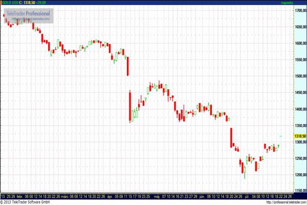 Az augusztusi szállítású arany jegyzése 2 százalékos, 26 dolláros emelkedés mellett 1318,90 dollárnál jár unciánként az elektronikus kereskedésben. Pénteken a kontraktus 0,7 százalékkal, a múlt héten összességében 1,2 százalékkal emelkedett a nemesfém árfolyama, miután a Fed elnöke a kongresszusi meghallgatásán arról beszélt, hogy a jegybanknak nincs előre megírt ütemterve a monetáris élénkítés lassítására.