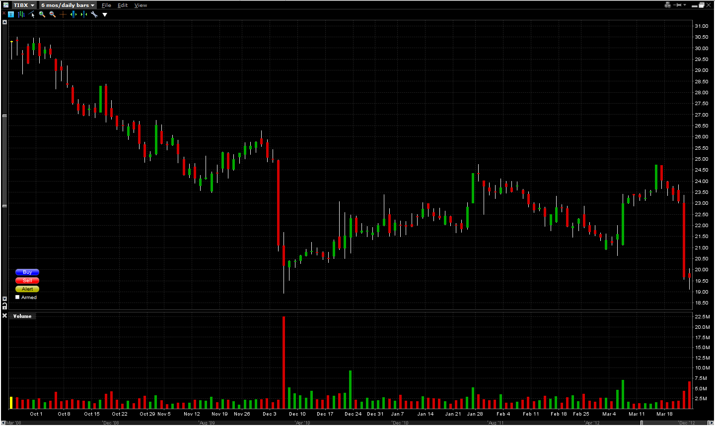 A jelentés hatására kissebb negatív hangulat vette kezdetét a piacon, ugyanis a befektetők a jelenleginél magasabb bevételi eredményekkel kalkuláltak. A bevétel csupán 5%-al nőtt (237 millió dollárra) az előző negyedévhez képest. A Tibco Software értékesítési adatai szintén elmaradtak a várttól, ezenkívül a bruttó árrés is szűkült. Ezeknek az eredményeknek az együttes hatása váltotta ki a részvényben a hirtelen esést.