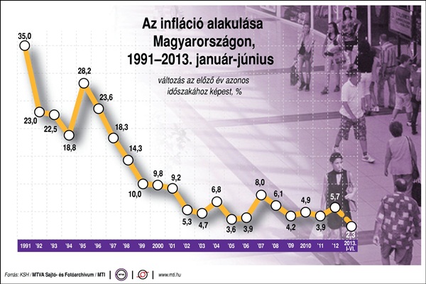 A tartós fogyasztási cikkekért 1,7%-kal kellett kevesebbet fizetni. A ruházkodási cikkek ára átlagosan 0,1%-kal csökkent. A háztartási energia esetében szintén árcsökkenés (8,7%) volt megfigyelhető. Ez utóbbin belül a vezetékes gázért és az elektromos energiáért egyaránt 10%-kal kellett kevesebbet fizetni, míg a távfűtés ára 11,7%-kal csökkent 2012. júniushoz képest.