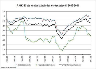 A GKI fogyasztói bizalmi index értéke a 2010 novembere, de főleg az idei március óta tartó szinte folyamatos csökkenést folytatva júliusban is kissé csökkent. A lakosság saját várható pénzügyi helyzetét, megtakarítási lehetőségeit valamint a tartós fogyasztási cikkek vásárlásának esélyét is valamivel rosszabbnak látta, mint egy hónappal korábban. (MTI)
