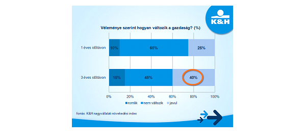 A KSH legfrissebb, szezonálisan és naptárhatással kiigazított adata szerint a bruttó hazai termék volumene 2016 IV. negyedévében 0,4 %-kal haladta meg az előző év azonos időszakát, míg tavaly összességében 1,5%-kal emelkedett a GDP. A K&H nagyvállalatok körében végzett felmérése szerint az idei év is hasonlóan alakulhat, hiszen leginkább a jelenlegi gazdasági növekedés folytatódásával terveznek a nagyvállalati döntéshozók. „2017-re stabil kilátásai vannak a legnagyobb hazai cégeknek, hiszen közel kétharmaduk (65%) a jelenlegi növekedési ütem folytatódásában bízik, miközben minden negyedik vállalat intenzívebb gazdasági bővülést feltételez. A következő három évet tekintve viszont optimistábbak a vállalatvezetők. Legnagyobb arányban (45%) ugyan 2020-ra is a mostani növekedési ütem folytatódására számítanak, közel ugyanennyien (40%) azonban a jelenlegi 1,5%-os teljesítménynél erőteljesebb bővülésre számítanak. Ezzel egybecseng az Európai Bizottság várakozása is, amely szerint 2018-ban már 3,2%-kal nőhet a magyar gazdaság” – részletezte az eredményeket Hodina Péter, a K&H Vállalati értékesítési igazgatóságának vezetője.