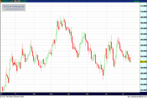 EUR/USD (1,3000 – 1,3120): Az ECB részéről Constancio nyilatkozott, aki szerint a vártnál hosszabb ideig tart majd egy lassú ütemű gazdasági kilábalás, mely indokolja az alkalmazkodó jellegű monetáris politikát. Ez alatt az expanzív likviditásbővítés és alacsony kamatok fennmaradását érti a jegybankár. A nyilatkozat némileg erősítette a dollárt, de még nincs az 1,30 közelében a keresztárfolyam, úgy tűnik Bernanke szerdai nyilatkozatának még hatása van a piacokra.