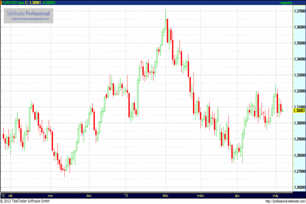 EUR/USD (1,3000 – 1,3140): Mario Draghi az EKB elnöke tett róla, hogy ne fulladjon unalomba a londoni szünnap miatt a hétfő. Rómában tartott beszédében megismételte, hogy a központi bank kész a cselekvésre, ha a következő hetekben a vártnál rosszabb makró adatok érkeznek a közös devizát használó országokból. Ez azt jelenti, hogy akár már a következő ülésen is jelenthetnek be olyan lépéseket melyek segíthetnek a gondokkal küzdő gazdaságoknak. Az euro gyengüléssel reagált Draghi nyilatkozatára, az esést az 1,3050-es szint fogta meg.