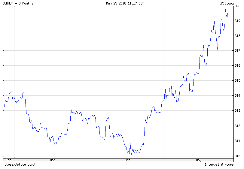 Ma reggel már a 320 forintos szintet teszteli az árfolyam, amit ha áttör, akkor 322 forintig nyílhat meg az út. (forrás: ERSTE)