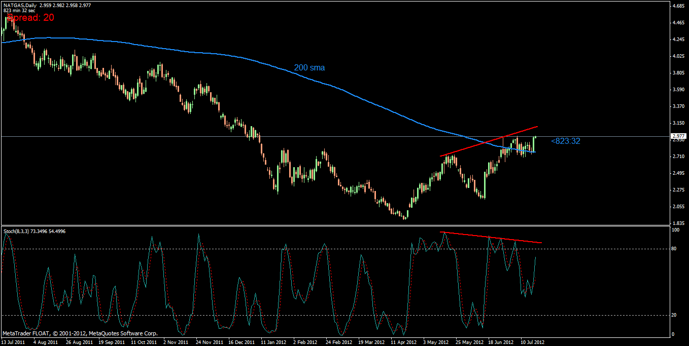 A kereslet óvatos emelkedésében az Államokban tomboló hőség is szerepet játszik, a szénfűtés kiváltása mellett természetesen. A tegnapi napon szintén egy fölszúrást lehetett látni a 3 dolláros érték közelébe, mely mozgás rövid távú volt, hiszen az emelkedésben négy amerikai nukleáris atomerőmű üzemzavara játszott szerepet.