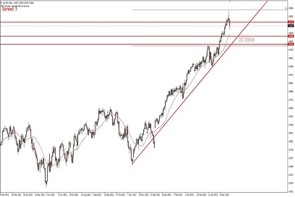 15000-es szintekig is visszacsúszhat az index a következő hetekben, de továbbra is kis pozíciókkal érdemes az ereszkedés irányába nyitni, hiszen van még magasabb csúcs. Mindenesetre tegnap látszódott, hogy 2012 szeptembere óta mennyire elszakadtak az irányadók a fundamentumoktól és így, hogy a Federal Reserve tagjai egyre jobban feszegetik a QE3 befejezését megvan a háttér és visszahúzódhatnak egy alacsonyabb tartományba. (Forrás: XTB Magyarország, Balogh Balázs)