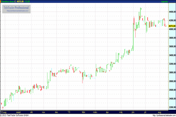 A Danubius részvénye a csütörtöki kereskedést 0,37 százalékos erősödéssel, 4075 forinton zárta. Az elmúlt egy évben a legmagasabb árfolyama 4500, a legalacsonyabb 2320 forint volt. (MTI)