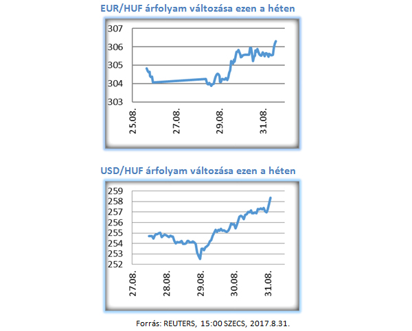 A hétfői napon nem tapasztalhattunk erőteljes mozgást a forint esetében. Kedden azonban a nyomás hatására gyengülni kezdett a hazai fizetőeszköz, ez kísérte a következő napokban is. Csütörtök délutánra a 306,5 HUF/EUR árfolyam szintig gyengült.