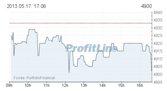 Az OTP-részvények ára 33 forinttal, 0,67 százalékkal 4900 forintra csökkent, forgalmuk 2,6 milliárd forintot tett ki.