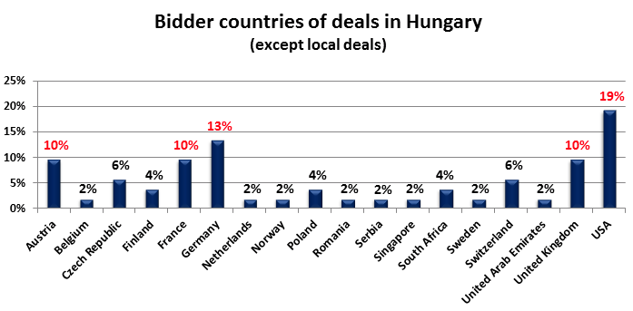 Az elemzés szerint ebben az időszakban az említett piacokon 50 millió EUR alatt összesen 1138 tranzakció történt, melynek 40%-a Lengyelországban ment végbe. Magyarország a tranzakciószámokat tekintve a 4. helyen áll (84 tranzakció, 7%) Csehországot és Romániát követően. A régióban zajló cégvásárlások 57%-ban országon belül történtek, mindössze 8%-ban a régió országai között, a fennmaradó 36%-ban pedig régión kívülről érkezett az ajánlattevő. Országonként ezek az arányok jelentősen eltérnek egymástól. A magyar cégfelvásárlások több mint felénél – azaz a régiós átlagnál jóval nagyobb arányban - a vevő a CEE régión kívülről érkezett, a legintenzívebb érdeklődés az USA, Németország, Franciaország, az Egyesült Királyság és Ausztria részéről mutatkozik a magyar cégek iránt. Az elemzés kiterjedt az ajánlattevő cégek hátterére, méretére, illetve a tranzakciók típusára is, hiszen jogosan merül fel a kérdés: Kik ezek a felvásárlók? Mit lehet, kell róluk tudni?