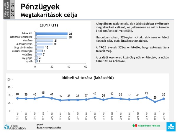 A legtöbb fiatal lakást szeretne vásárolni, erre gyűjt 39 százalékuk. Majdnem ugyanennyien (38%) általános tartalékot képeznének, ötödük autóra és utazásra gyűjt, ennél kevesebben családi eseményre, oktatásra, nyugdíjcélra tesznek félre.