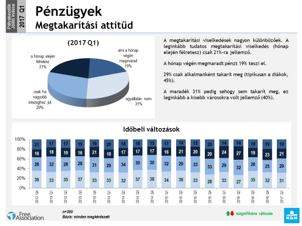 Hiába az alacsony jövedelem, a bank jelenleg több mint 50 ezer speciálisan fiatalokra szabott számlát vezet, az Y-generáció igényeinek megfelelően ezek könnyen használható alaptermékek, korszerű, digitális szolgáltatások. Arra a kérdésre, hogy van-e megtakarítása, a megkérdezett fiatalok 37 százaléka válaszolt igennel. A megtakarító fiatalok 21 százaléka tudatos ebben a kérdésben: ők már hónap elején félreteszik a kitűzött összeget. A hónap végén maradó összeget 19 százalékuk nem költi el azonnal, hanem elteszi. 29 százalékuk alkalmi megtakarító, azaz ha éppen nagyobb összeghez jutnak, akkor félretesznek, de tudatosan hónapról hónapra ezt nem teszik. A fiatalok 31 százaléka pedig soha nem tesz félre.