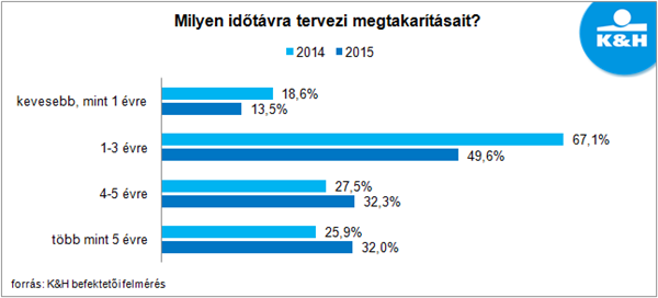 Az elmúlt két évben egyre csökkenő kamatszint folyamatosan arra ösztönözte a befektetőket, hogy a betétektől elmozduljanak az alternatív befektetések - befektetési alapok, állampapírok, részvények - irányába, illetve hogy hosszabb időtávban gondolkodjanak, ami lehetővé teszi a magasabb hozamlehetőséget nyújtó befektetési eszközök választását. A K&H befektetői felmérése alapján ez a folyamat idén még inkább felerősödött.