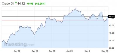 Merre is tart akkor a piac? Ha a WTI árakat nézzük, akkor az olaj jelenleg a 43,50-46,00 dollár/hordó közötti sávban mozog. Ennél érdekesebb lehet a Brent alakulása, melynek piacán az árgörbe éppen egy jól fejlett fej és vállak alakzat kialakulását mutatja. Ez alapvetően annyit jelent, hogy a nyakvonalnak tekinthető 44,20-as szint alatt mehetnek még lejjebb is az árak.