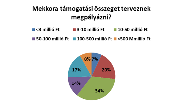 A következő 3 évben a pályázatot tervező hazai kis- és közepes vállalkozások fele jellemzően egy pályázatot szeretne benyújtani, de minden harmadik akár 2-3 pályázaton is indulna. Ezen cégek fele 50 millió Ft alatti összegre pályázna, azonban a 700 millió Ft feletti árbevétellel rendelkezők, valamint az ipari cégek ennél nagyobb, 50-100 millió Ft támogatással számolnak.