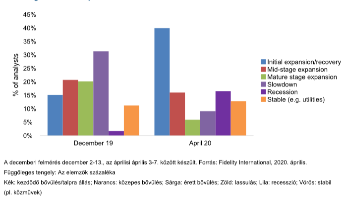 A Fidelity nem várja, hogy ebből a korábban nem tapasztalt, teljes gazdasági leállásból sikerül azonnal talpra állni, de elemzői arra számítanak, hogy egy éven belül megjelennek a javulás első jelei. Az elemzők 40%-a szerint az ágazatában 12 hónapon belül megkezdődik az újraéledés, és csupán 16%-uk véli úgy, hogy az ágazata még egy év múlva is recesszióban lesz.