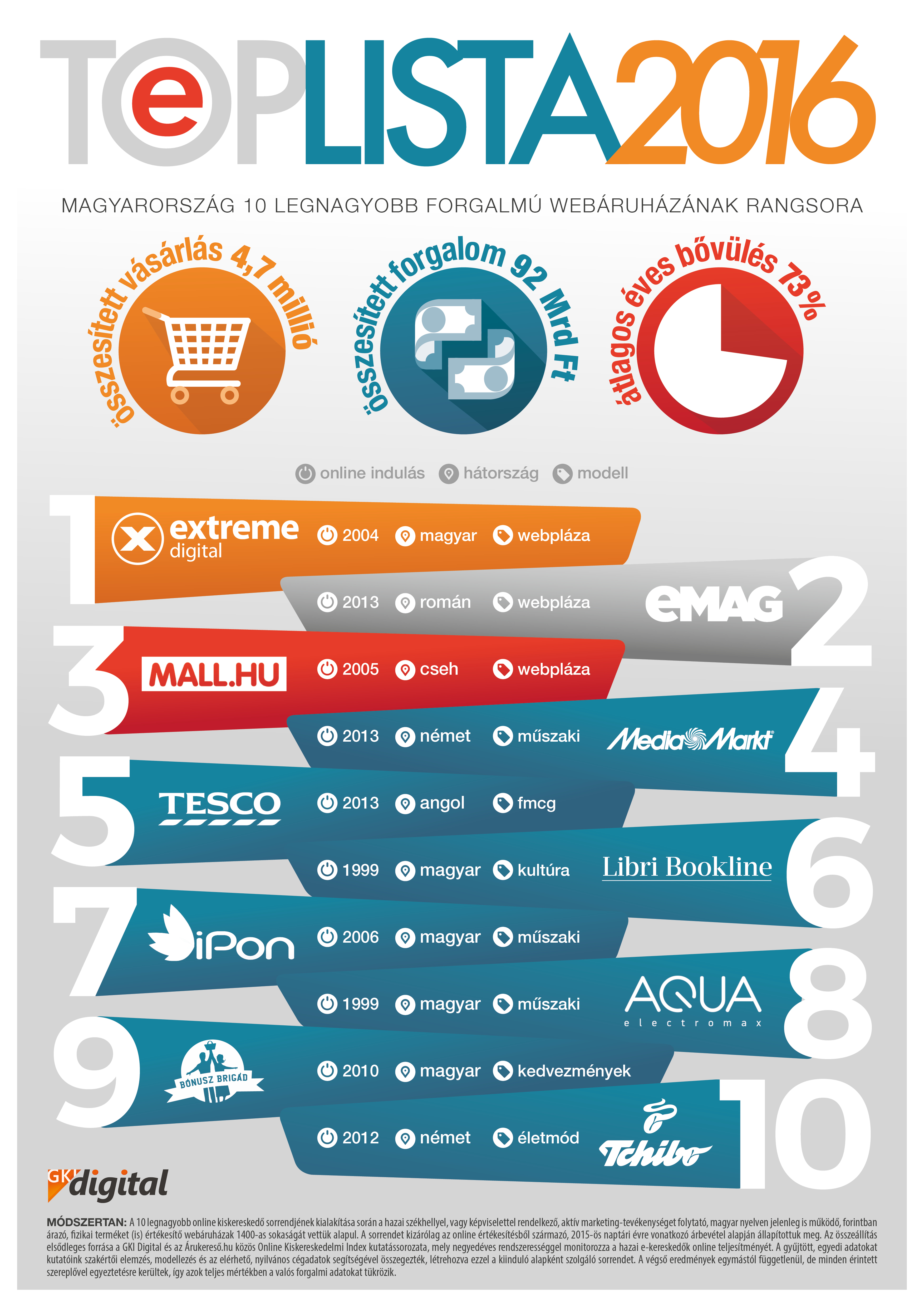 A lista első helyére 2015 után ismét az Extreme Digital került, ezzel továbbra is ő Magyarország legnagyobb forgalmú e-kereskedője.