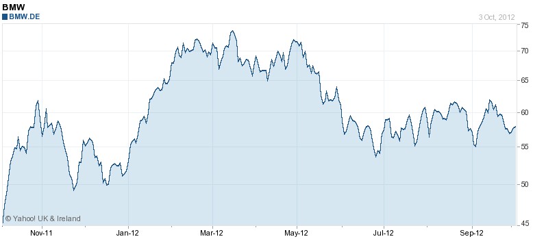 A BMW a jelenlegi alacsony hozamkörnyezetben a mostani értékeltségi szinteken 45%-kal van a megfelelő kockázatokkal súlyozott szintek alatt. A cég a legutolsó negyedévben rekordértékesítést mutatott fel, miközben eredményhányadai visszatértek a rendes kerékvágásba. A megfelelő értékeltségi szintekhez vagy komoly árfolyam-emelkedésre, vagy a forgalom 20% feletti csökkenésére lenne szükség, ám ez egyelőre nem látszik bekövetkezni. Összehasonlításképpen: a forgalom 2007 és 2009 között, azaz a korábbi rekordév és a recesszió idején 9%-kal esett vissza.