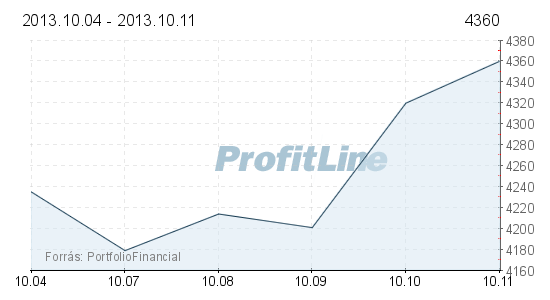 A csütörtökön erőteljes emelkedés mutatkozott, javult a nemzetközi hangulat, miután az amerikai költségvetési vitában az álláspontok közeledését látták a befektetők. A BUX az OTP és a Richter vezetésével erősödött, a Richter erősödéséhez hozzájárult várható bekerülése az MSCI piaci indexbe. A Magyar Telekom árfolyama ugyanakkor történelmi mélypontra esett.