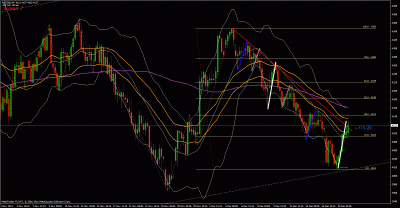 Az ereszkedő, trendelő mozgásba érdemes egy picit beletekinteni, gondolok itt a korrekciók elemzésére. Láthatjuk, (azonos szinekkel jelötem) ahogy az 1. és az 5. (kék), valamint a 2. és a 4. (szürke), illetve 3. és a 6. (fehér) korrekció mértéke pipekben mérve bizony látványosan közel azonos. A jelenlegi, vagy a 6.-ként jelölt korrekció, még bizony nem ért véget, ezért érdemes lesz megnézni a közeli eseményeket miként alakulnak majd.