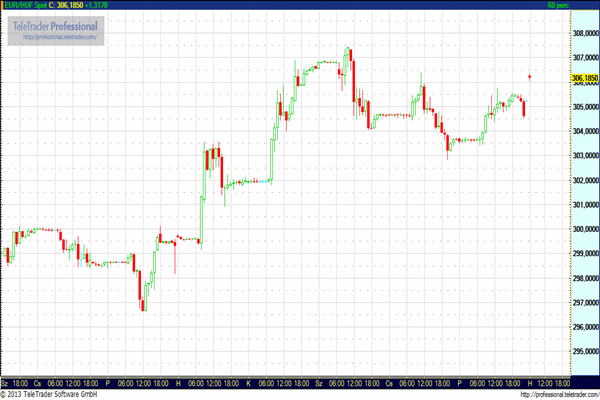 Az eurót 306,20 forinton jegyezték hétfő reggel háromnegyed nyolckora péntek esi záró 305,21 forint után. A befektetők elsősorban az euróövezeti pénzügyminiszterek szombat hajnali megállapodásának hírére kezdték eladni a kockázatos devizákat, hogy 10 milliárd eurós mentőhitelt nyújtanak a bajba jutott ciprusi gazdaságnak.