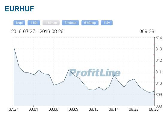 Az eurót 7 óra tájban 309,38 forinton, a dollárt pedig 274,02 forinton jegyezték. A frank 283,15 forintról 283,51 forintra erősödött.