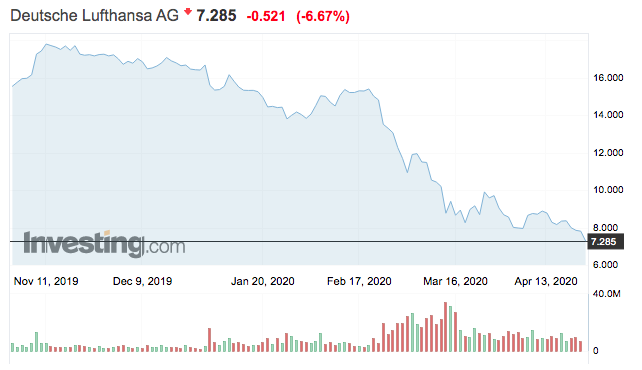 A Lufthansa részvényei ma is meredek esést mutatnak a német XETRA piacán