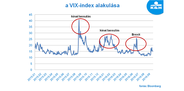 „Befektetőként leginkább a gazdasági adatokra, folyamatokra koncentrálunk, de ne felejtsünk el: a piacok hangulatát, a befektetők kockázatvállalási kedvét, ezen keresztül pedig a tényleges gazdasági folyamatokat is nagyban befolyásolja a politika. A brit népszavazást követően az idei év legnagyobb politikai eseménye az amerikai elnökválasztás, láthatóan még sincs komolyabb hatással a piacokra. A piac, egészen pontosan az S&P500 várt ingadozását mutató - félelemindexként is ismert - VIX-index kifejezetten alacsony értéken áll, ami egyértelműen azt mutatja, hogy a befektetők nem izgulnak túlzottan az elnökválasztás kimenetelén” - mondta el Kovács Mátyás, a K&H Alapkezelő szenior portfólió-menedzsere.