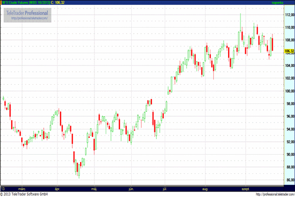 A novemberi szállítású amerikai könnyűolaj jegyzése 1,23 dolláros, 1,20 százalékos csökkenés mellett 101,62 dollárnál jár hordónként a Nymex elektronikus kereskedésében. A novemberi szállítású Brent kőolajfajta árfolyama 1,10 dollárral, 1,02 százalékkal 107,52 dollárra ereszkedett az ICE határidős kereskedésében.