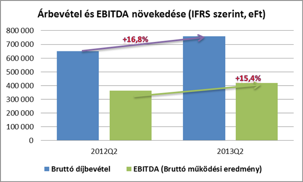 Az eredménysorokat vizsgálva elmondható, hogy a társaság EBITDA szintű eredménye is dinamikusan, több mint 15 százalékkal növekedett, meghaladta a 418 millió forintot. A működési eredmény 364 millió forintot mutatott a második negyedév végén, amely több mint 31 százalékkal haladja meg az előző év azonos időszaki adatát. Az adózás előtti eredmény, amelyet a fordulónapi átértékelések miatt a társaság ingatlan-portfóliójának átértékelése 212 millió forinttal növelt, míg a hitelekhez kapcsolódó nem realizálódó átértékelési különbözet 66 millió forinttal csökkentett, 294 millió forintra emelkedett a tavalyi 46 millió forintos negatív eredményről. A társaság tulajdonosaira jutó eredmény pedig 251 millió forintra nőtt a 2012 második negyedévében elért 778 millió forintos negatív eredményről.