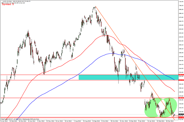 Igaz az április vége és május már a profitrealizálásokról szólhatnak, de az alma már túl van egy nagy realizáláson és az április 23-án érkező gyorsjelentés is dobhat egyet a jegyzésen. Nem áll rosszul az Apple, főleg ha csak az itthoni táblagép értékesítési hullámra gondolunk.Csak Magyarországon ugyanis csaknem megduplázódott az okos kis eszközök eladási mutatója, így a 426 dolláros szinten már reálisabb értékkel vehetünk bele a papírba. Ha megindulna a vétel, akkor technikailag két helyen történhet profit-taking, az első megálló 468-nál, a második pedig 514 környékén. (Forrás: XTB Magyarország, Balogh Balázs)