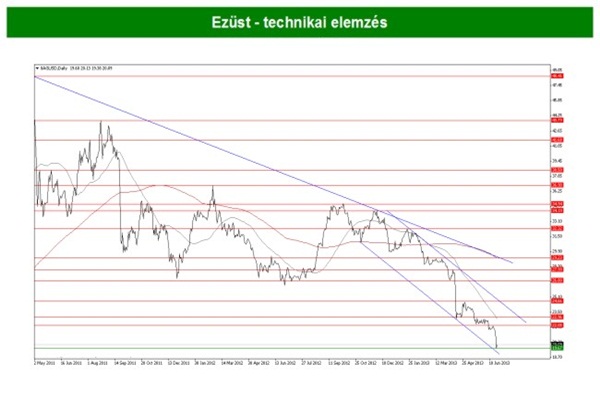 Az ezüstár meredek esése csak 19,57 dollárnál talált megállóra. Egy héttel korábban még 22 dollár felett jegyezték az olcsóbbik nemesfém unciáját. A támaszok nélküli, nyíl egyenes árzuhatag jól tükrözi a nemesfémekre mostanában jellemző reményvesztett hangulatot. Az ezüst mostani, 20 dollár alatti árszintjére két éve nem volt példa. A kilátások itt is borúsak, ezért további áreséssel az ezüstnél is számolni kell.