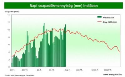 India területén jellemzően június elején kezdődik és szeptember végéig tart az esős évszak. A mostanában félidejéhez érkezett monszun eddig 20%-kal kevesebb csapadékot hozott a sok éves átlagnál. A hiányzó esőt már megérzik a gabonafélék, a szójabab, a cukornád és a gyapot. Szakemberek ugyan még nem beszélnek aszályos viszonyokról, de a kormány máris segélyeket helyezett kilátásba a gazdák számára. Gondot nem csak a bevételkiesés jelent az érintetteknél, de a szerényebb termés miatt a mezőgazdasági termékek árának drágulása is várható, ami egyrészt infláció gerjesztő hatású, másrészt a nemzeti össztermékhez 15%-ban hozzájáruló agrárium alulteljesítése fékezi a gazdaság egészének növekedését is.