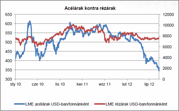 Kínában - ahol az ipari fémek iránti csökkenő kereslet illetve a készletek egy részének kiárusítása hatására esik az acél, a szén és vasérc ára - a helyzet egyre érdekesebb. A kohászati ágazat problémái azt igazolják, hogy az egyre gyatrább építőipari konjunktúra (többek között gyengülő ingatlan piaci kereslet) nagy problémát jelent és egyre nagyobb befolyással van az ipari nyersanyag árakra az egész világon. A kínai acélkohászat Financial Times által idézett képviselőinek véleménye