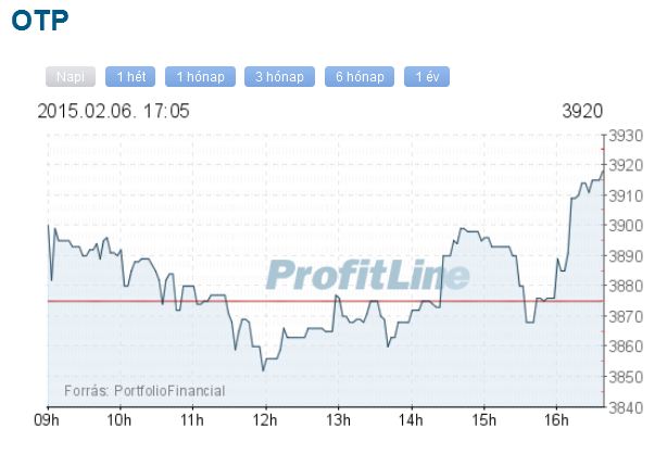 A Mol 30 forinttal, 0,26 százalékkal 11 730 forintra erősödött, 709,5 millió forintos forgalomban. Az OTP-részvények ára 45 forinttal, 1,16 százalékkal 3920 forintra nőtt, forgalmuk 3,8 milliárd forintot tett ki.