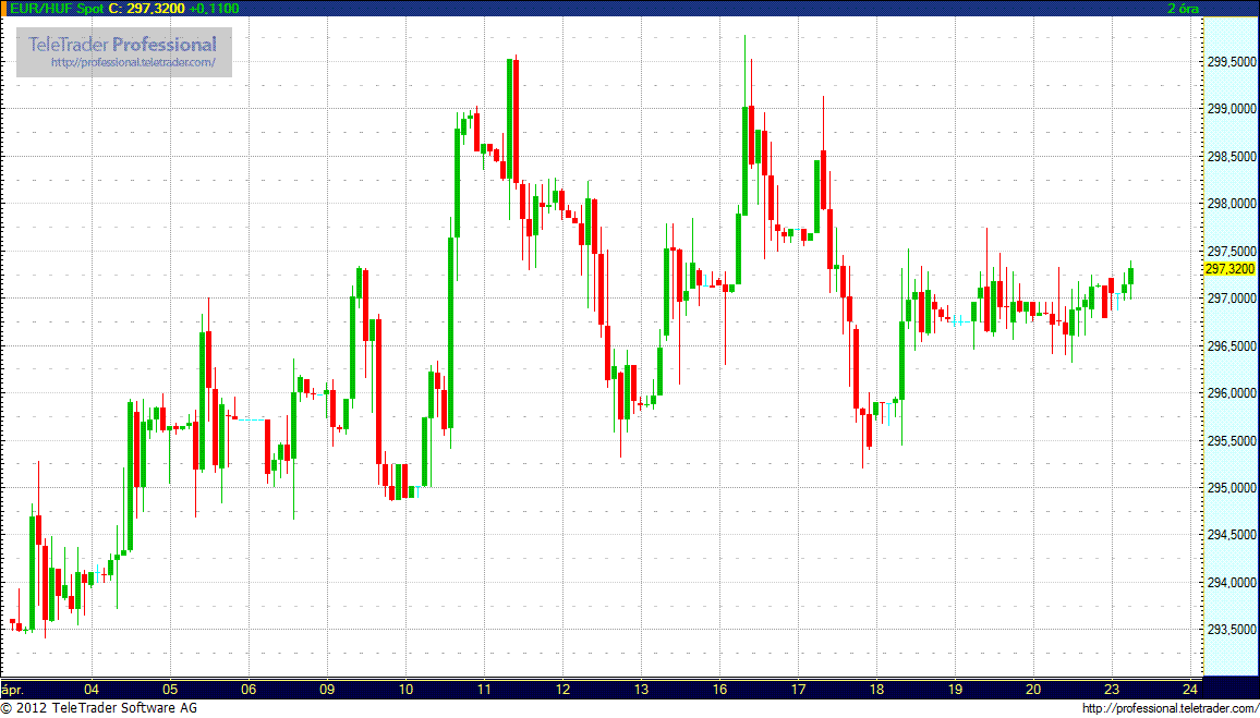Az euró középárfolyamon 297,35 forint volt reggel fél nyolckor a bankközi devizapiacon a péntek esti 297,25 forint után. Péntek reggel 296,85 forint volt az euró. Február végén 286 forint alatt is járt, miután január 4-én, 321,61 forinton, új csúcsot ért el.