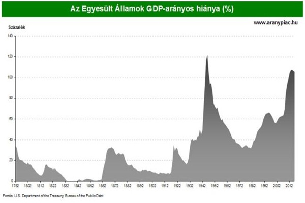 A félelmek nem alaptalanok. Az államadósságot a bruttó hazai össztermékhez viszonyítva látszik, hogy mennyire aggasztó az Egyesült Államok eladósodottságának mértéke. Amikor Obama elnök 2009-ben átvette az ország irányítását még csak 70% körül volt a GDP-arányos államháztartási hiány. Mostanra ez a mutató 105,7%-ra emelkedett, vagyis a deficit meghaladja a gazdaság egész éves teljesítőképességét. Ez hasonlóan katasztrofális adat, mint a nemzetközi segélyre szoruló Portugália, Olaszország vagy Írország esetében.