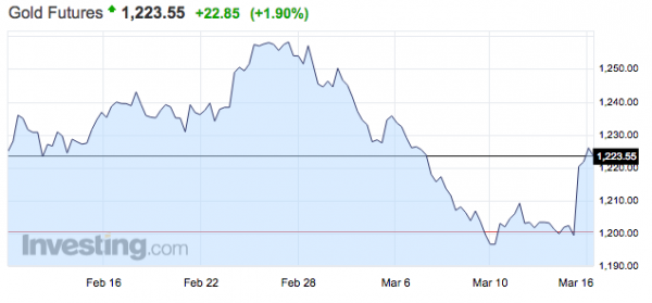 Ez a piacok számára azt jelenti, hogy az infláció megugrása esetén sem fog a Fed drasztikusan kamatot emelni. A negatív reálkamat pedig pozitív hatással volt az arany árfolyamára, ami egészen 1.228 dollárig ugrott meg a mai napon. Az USA jegybank szerepét betöltő bankja idén 1,9%-os inflációt vár, ami jövőre 2%-ra ugorhat.