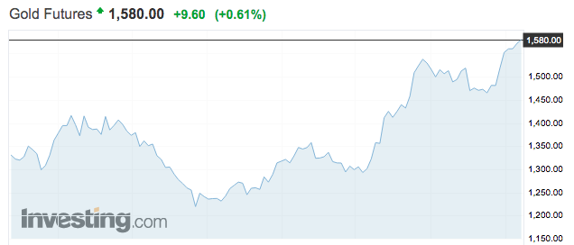 A mostani romló nemzetközi hangulatban ismét előtérbe került az arany menedékeszköz szerepe, unciánkénti árfolyama 1.582 dollárig emelkedett.
