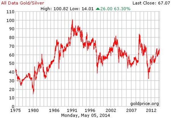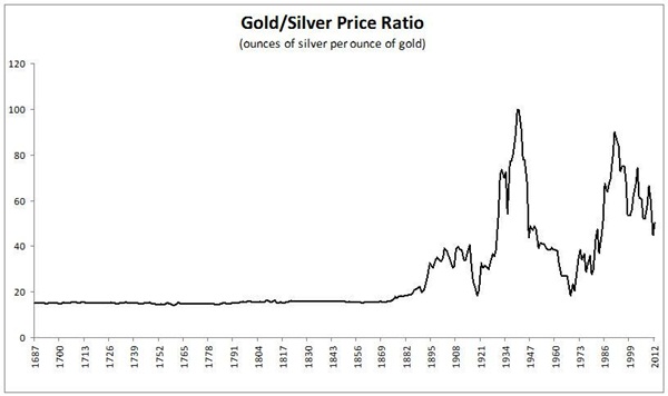 1975 óta az arany és az ezüst árfolyamának hányadosa csak egyszer ment 25 alá, 1980-ban ugyan 14-re esett, de csak amiatt, hogy a texasi Hunt fivérek hatalmas spekulációja az ezüst árát egy év alatt a tízszeresére, 50 dollárra verte fel, e nélkül valószínűleg nemigen került volna 25 alá. A spekuláció kifulladásával azonban az ezüst értékaránya ismét romlani kezdett az aranyhoz képest, olyannyira, hogy a ’90-es évek elején már 100 uncia ezüstöt kellett adni egy uncia aranyért.