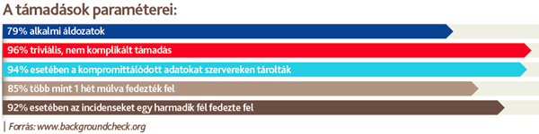 Különösen elgondolkodtató tény, hogy a támadások 96 százaléka nem komplikált támadás, illetve, hogy az incidensek többségét csak legalább egy hét elteltével, egy harmadik fél fedezte fel.
