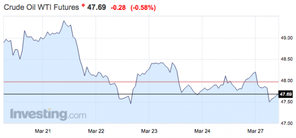 A WTI 47,5 dollárig gyengült, mivel a piac szerint sokkal hosszabb időre van szükség ahhoz, hogy a piaci kiegyenlítődés bekövetkezzen, mivel a felgyűlt jelentős készlet csökkentése lassabban várható, mint amire számítani lehetett.