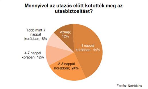 Magyarországon az utasbiztosításoknak egyre nagyobb hányadát, immár mintegy 35 százalékát az interneten kötik meg. Az online szerződő ügyfelek szeretik az utolsó napokra hagyni a biztosítás megkötését: 44 százalékuk az utazást megelőző napon teljesíti ezt a feladatot, és további 12 százaléknak csak az utazás napján jut eszébe utasbiztosítást kötni.