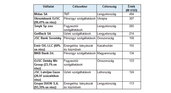 Miközben ebben az időszakban a legkedveltebb befektetési célország Lengyelország volt, a régió tíz legnagyobb üzlete közé Magyarországi tranzakció is bekerült: az állam által értékesített MKB Bank Zrt. a listán a hetedik helyet foglalja el.