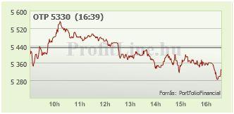 Az OTP részvények ára 100 forinttal, 1,84 százalékkal 5.330 forintra esett, forgalmuk 21,8 milliárd forintot tett ki.