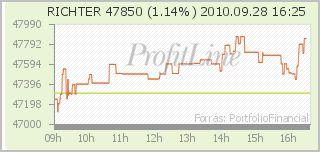 A Richter árfolyama a kereskedés végén megérezte, hogy a New York-i székhelyű BlackRock Inc. pénzügyi befektető 5,33 százalékos befolyása 4,99 százalékra csökkent a Richterben. A gyógyszerpapír végül ismét 47.000 forint felett zárt - fűzte hozzá.